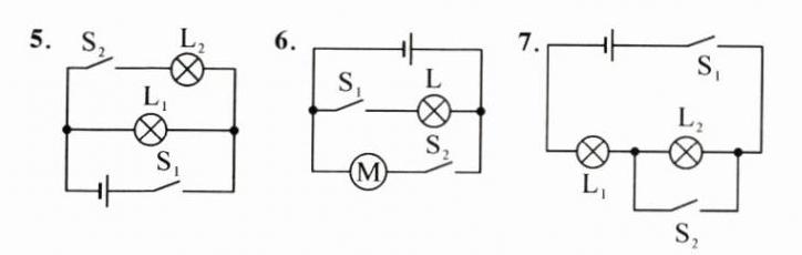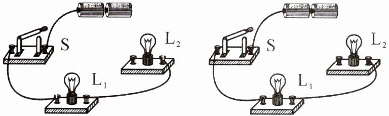8. 用笔画线代替导线,把下面两个实物电路图补充完整。两个实物图分别为开关同时控制两个灯泡的两种方法,导线不能交叉。