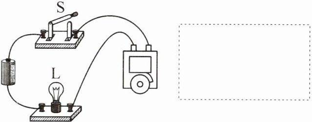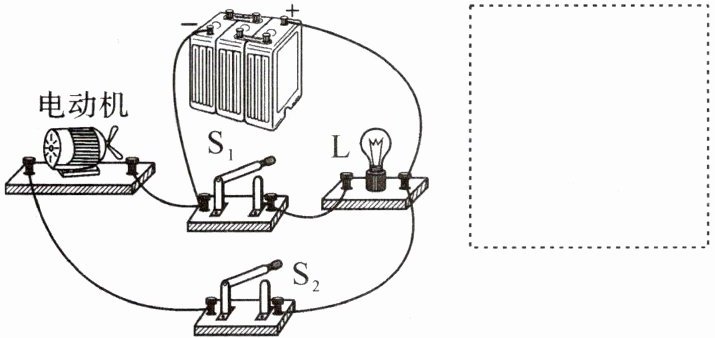 6. 在虚线框里画出如图所示实物图对应的电路图(电动机用“M”表示)。