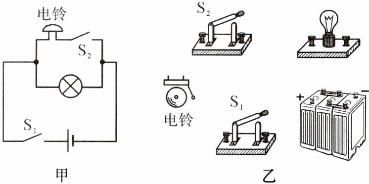 3. 根据如图甲所示的电路图,用笔画线代替导线,将图乙中的元件连接起来。