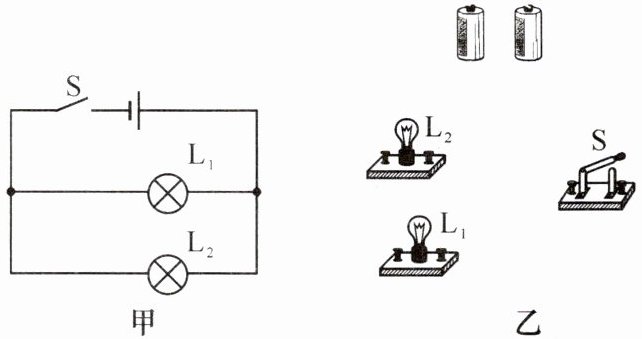 2. 请按图甲电路,用笔画线代替导线把如图乙所示的实物连起来。