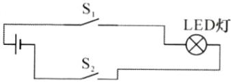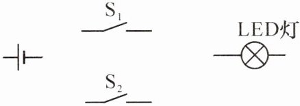 13. (2024·亳州谯城区期末)有一款感应照明门把手,当夜间有人触摸把手时,LED 灯亮,白天 LED 灯不亮。整个电路中有电源、感应开关 $ S_{1} $、光敏开关 $ S_{2} $(白天断开,晚上闭合),请在图中画出可以实现该功能的电路的连接方式。