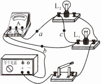 D.撤掉导线 c,电流表测量的是通过小灯泡 L₂ 的电流