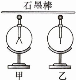 11. (2024·广元)如图,在干燥环境中,取两个相同且不带电的验电器甲和乙,用毛皮摩擦过的橡胶棒接触甲的金属球,甲的金属箔张开;再用石墨棒连接两个验电器的金属球,观察到乙的金属箔张开。下列对上述实验过程的分析,错误的是(