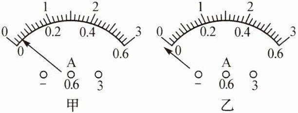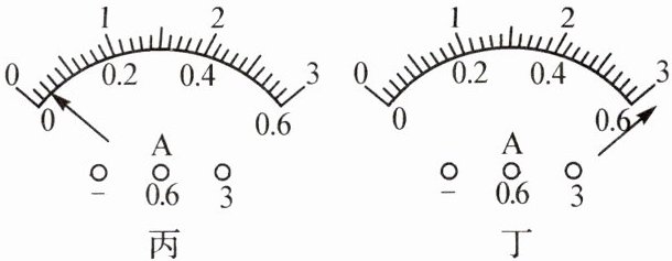 12. 甲、乙、丙、丁四名同学在“用电流表测电流”的实验中,甲在连接电路前发现电流表指针偏转情况如图甲所示。乙、丙、丁闭合开关前,他们的电流表指针均指在零刻度线处,当闭合开关试触时,发现电流表指针摆动分别出现了如图乙、丙、丁所示的三种情况。