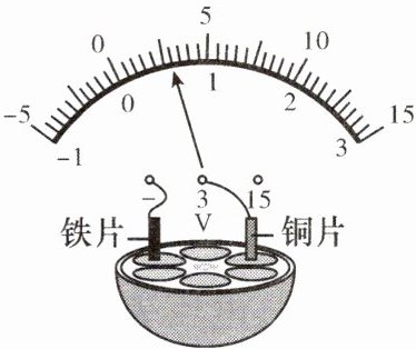 12. (2024·淮安节选)如图所示,取一个橙子,把铜片、铁片插入其中,制成一个水果电池。