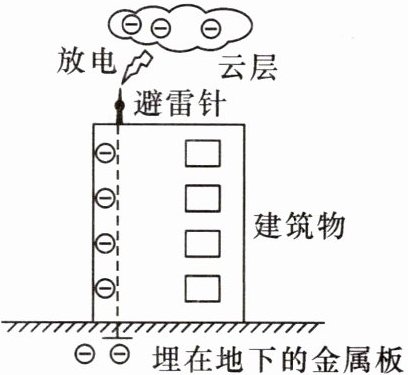 12. (2024·广州)如图,带负电的云层靠近建筑物上的避雷针时,向避雷针剧烈放电形成雷电,下列说法正确的是(