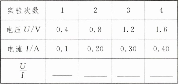 状态。(4) 小明先用 $ 5\Omega $ 的电阻进行实验,测出一组数据填入下表后,再用 $ 10\Omega $ 的电阻替换 $ 5\Omega $ 的电阻接入电路,闭合开关,调节滑动变阻器,当电压表示数为 $ 3\ V $ 时,电流表指针位置如图所示,将电流表示数填入下表中。
