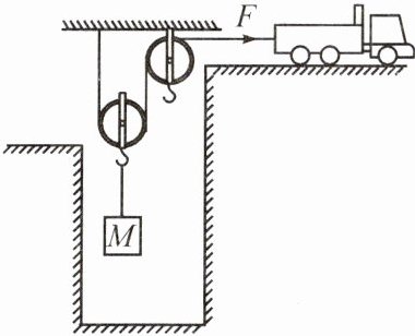 13.(2024·河池宜州区期中)用滑轮组提升矿井内重为6400N的物体$M$,汽车10s内匀速前进了20m。此过程中,滑轮组的机械效率为80%。(不考虑绳重和摩擦)求: