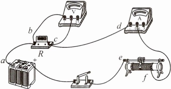 9. (2024·蚌埠高新区期中)如图所示,电源电压为 6 V,闭合开关后,小明发现电流表、电压表示数均为零,他用一根导线检查电路故障,当将该导线两端分别接到 a、d 接线柱上,发现电流表有示数,电压表示数仍为 0;当将该导线两端分别接到 c、f 接线柱上,发现电压表有示数,电流表示数仍为 0,由此可判断故障是(