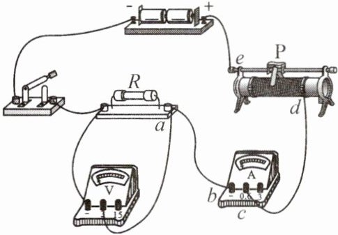 10. 如图所示的电路,将滑动变阻器的滑片 P 移至电阻值最大处,闭合开关,移动滑片 P,发现电流表和电压表均无示数。为了排查电路故障,滑片 P 置于某个位置不动,只将与电压表“+”接线柱相连导线的另一端 a 拆下,将其依次连接到 b、c、d、e 接线柱上,发现电流表始终无示数,且只有当连接到 e 接线柱上时电压表有示数。若电路中只有一处故障,则发生的故障是(