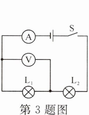 3. 如图所示的电路中,闭合开关后一灯亮,另一灯不亮,电流表有示数,电压表无示数,其原因可能是(