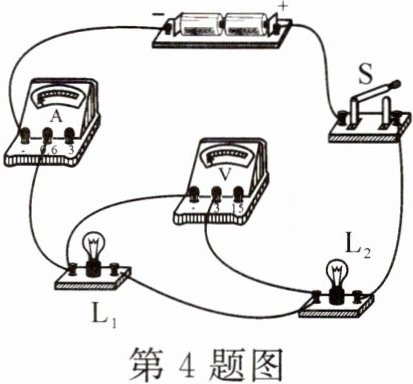 4. 如图所示的电路,闭合开关 S 后,两灯均发光,一段时间后,一盏灯突然熄灭,电流表、电压表都有示数,则该电路故障可能是(