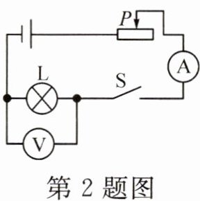 2. (2024·连云港)如图所示,电源电压不变,闭合开关 S 后,当滑动变阻器的滑片 P 向右移动过程中 (