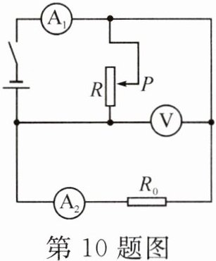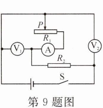9. 如图所示,电源电压恒定不变,闭合开关 S,将滑动变阻器 $ R_{1} $ 的滑片 P 向右移动,下列说法正确的是 (