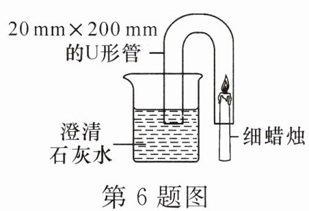 6. 新考向 创新实验 某同学利用如图创新实验对蜡烛及其燃烧过程进行探究。当蜡烛燃烧约 1 min 后,观察到澄清石灰水变浑浊,U 形管内出现大量水雾。下列说法不正确的是(