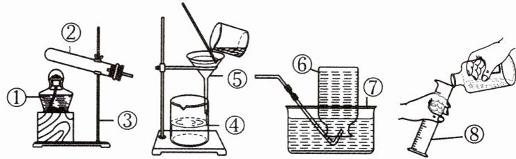 ①酒精灯 ②试管 ③铁架台 ④烧杯 ⑤漏斗 ⑥集气瓶 ⑦水槽 ⑧量筒