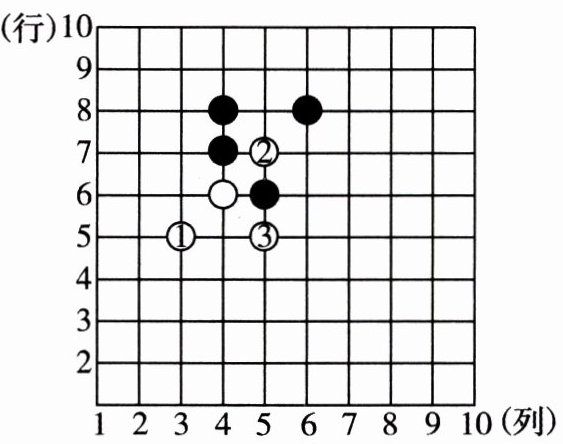 (1)数对是一个表示位置的概念,先列后行。白棋1在第3列第5行,用数对表示为$(3,5)$;白棋2在第5列第7行,用数对表示为$(5,7)$;白棋3在第5列第5行,用数对表示为$(5,5)$。