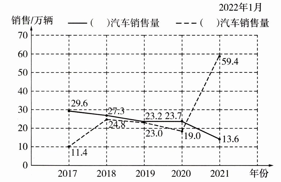 (3)( )年,该品牌两类汽车的销售量差距最小,相差( )万辆。