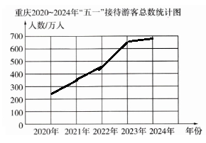 (2)观察折线统计图,2020~2024年“五一”期间来重庆旅游的游客数呈怎样的变化趋势?