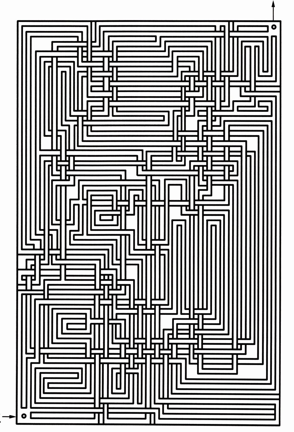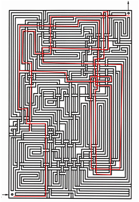 下面是一幅水管图,错综复杂,你能从“起点”出发,为水管找出路,走到“终点”吗?找到一条即可。