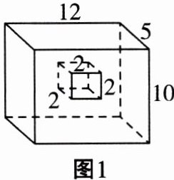 长方体体积$V_1=12×5×10 = 600$($cm^3$)。