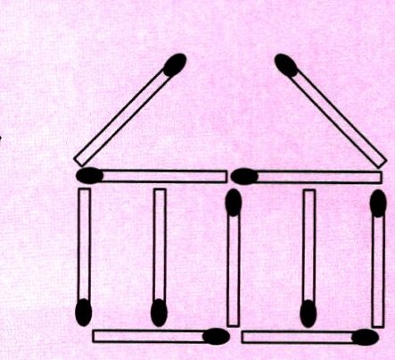 1. 如右图所示,图中是由11根火柴拼成的一座“小房子”,请移动其中的两根火柴,使它变成11个正方形。你知道该怎么做吗?