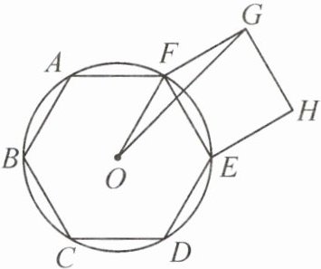 9. 如图,$\odot O$ 的半径为 $R$,六边形 $ABCDEF$ 是圆内接正六边形,四边形 $EFGH$ 是正方形。