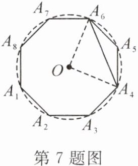 7. 如图,点 $O$ 是正八边形 $A_1A_2\cdots A_8$ 外接圆的圆心,连接 $A_4A_6$。若 $\odot O$ 的半径为 $4\mathrm{cm}$,则 $A_4A_6 =$