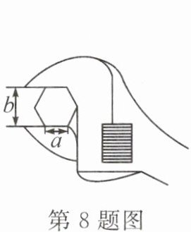 8. (教材 P108 习题 T5 变式)如图,工人师傅用扳手拧形状为正六边形的螺帽,现测得扳手的开口宽度 $b = 3\mathrm{cm}$,则螺帽边长 $a =$
