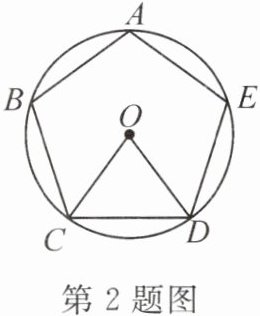 2. 如图,正五边形 $ABCDE$ 内接于 $\odot O$,连接 $OC$,$OD$,则 $\angle COD =$(