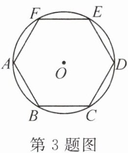 3. (2022·成都)如图,正六边形 $ABCDEF$ 内接于 $\odot O$。若 $\odot O$ 的周长等于 $6\pi$,则正六边形的边长为(