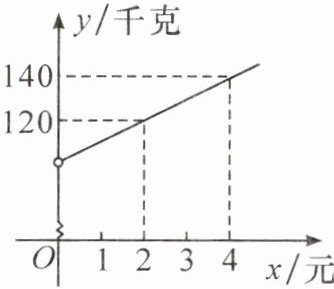 (1)设 y 与 x 之间的函数关系式为 y=kx+b(k≠0),则{2k+b=120,4k+b=140,解得{k=10,b=100,