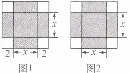 16. 新考向 数学文化 《代数学》中记载,形如 $x^{2}+8x = 33$ 的方程,求正数解的几何方法是:“如图 1,先构造一个面积为 $x^{2}$ 的正方形,再以正方形的边长为一边向外构造四个面积为 $2x$ 的矩形,得到大正方形的面积为 $33 + 16=49$,则该方程的正数解为 $7 - 4=3$.”小聪按此方法解关于 $x$ 的方程 $x^{2}+6x + m=0$ 时,构造出如图 2 所示的图形,已知阴影部分的面积为 19,则该方程的正数解为