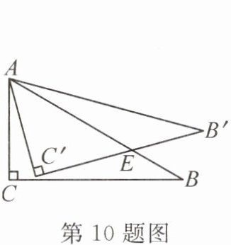 10. 如图,在 $ \triangle ABC $ 中,$ \angle C = 90^{\circ}, \angle B = 30^{\circ}, AB = 6 $,将 $ \triangle ABC $ 绕点 $ A $ 逆时针旋转 $ 15^{\circ} $ 得到 $ \triangle AB'C' $,$ B'C' $ 交 $ AB $ 于点 $ E $,则 $ B'E = $