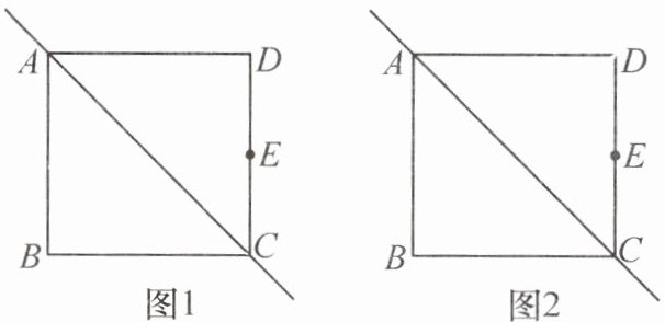 作直线$EO$,直线$EO$就是将直线$AC$绕着正方形$ABCD$的中心顺时针旋转$45^{\circ}$得到的直线。