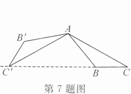 7. (2023·南昌期中)如图,将△ABC 绕点 A 顺时针旋转 120°得到△AB'C'.若点 C,B,C'共线,则∠ACB 的度数为 (