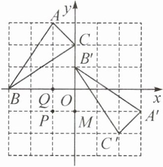 2. 如图,在正方形网格中,将△ABC 绕某点旋转一定的角度得到△A'B'C',则旋转中心是点 (