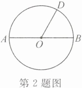 2. 如图,已知$AB$为$\odot O$的直径,点$D$为半圆周上的一点,且$\overset{\frown}{AD}$所对圆心角的度数是$\overset{\frown}{BD}$所对圆心角度数的$2$倍,则圆心角$\angle BOD=$