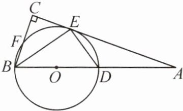 14. (2023·南昌青山湖区期末)如图,BD 是⊙O 的直径,A 是 BD 延长线上的一点,点 E 在⊙O 上,BC⊥AE,交 AE 的延长线于点 C,BC 交⊙O 于点 F,且点 E 是$\overset{\frown}{DF}$的中点。