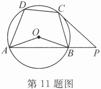 11. (2024·包头)如图,四边形 ABCD 是⊙O 的内接四边形,点 O 在四边形 ABCD 内部,过点 C 作⊙O 的切线交 AB 的延长线于点 P,连接 OA,OB。若∠AOB = 140°,∠BCP = 35°,则∠ADC 的度数为