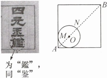 问题:此图中,正方形一条对角线 AB 与⊙O 相交于点 M,N(点 N 在点 M 的右上方)。若 AB 的长度为 10 丈,⊙O 的半径为 2 丈,则 BN 的长度为