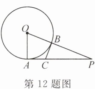 12. (2023·河南)如图,PA 与⊙O 相切于点 A,PO 交⊙O 于点 B,点 C 在 PA 上,且 CB = CA。若 OA = 5,PA = 12,则 CA 的长为