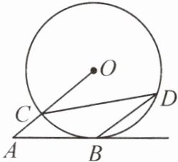 10. (2023·眉山)如图,AB 切⊙O 于点 B,连接 OA 交⊙O 于点 C,BD//OA 交⊙O 于点 D,连接 CD。若∠OCD = 25°,则∠A =(