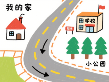 2. 根据上面提示的方法,试着画一画从你家到学校(或到附近某个地方)的路线图。