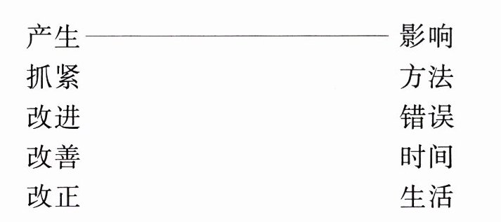 产生 —— 影响;抓紧 —— 时间;改进 —— 方法;改善 —— 生活;改正 —— 错误