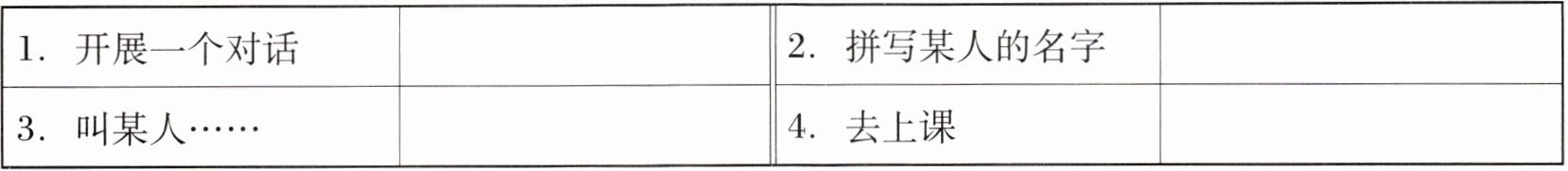 |1. 开展一个对话| |2. 拼写某人的名字| |