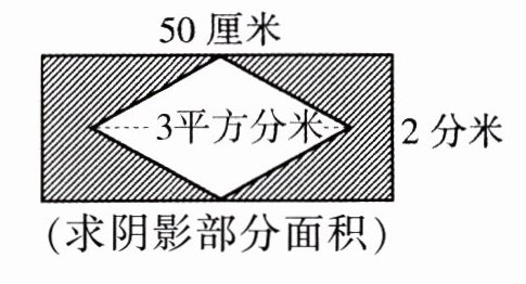 (平方厘米)。第三个图形(假设阴影部分是长方形减去三角形,$2$平方分米$ = 200$平方厘米)面积:长方形面积$S_1 = 50× h$(设高为$h$),三角形面积$S_2 =$