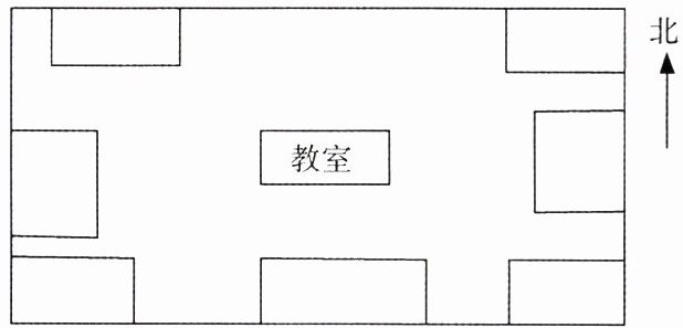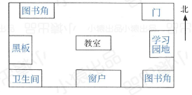 上面是我们教室的平面图,西面是黑板,东面是学习园地,东北面是门。西北面是图书角,西南面是卫生间,东南面是图书角,南面是窗户。