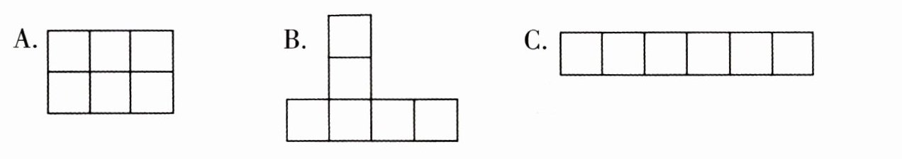 2. 分别用 6 个边长是 1 厘米的正方形拼成下面 3 个图形,周长最短的是 (