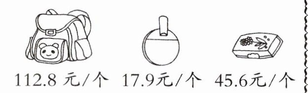 1. 求书包比文具盒贵多少元,用书包的价格减去文具盒的价格,即$112.8 - 45.6$。